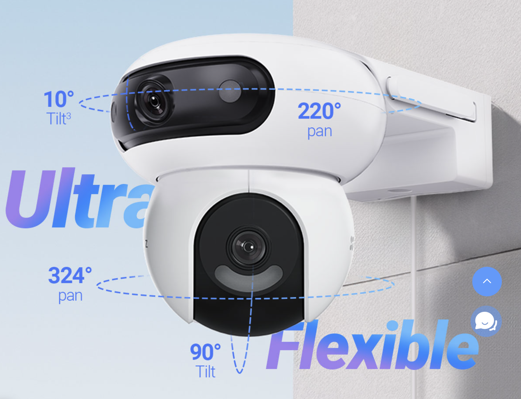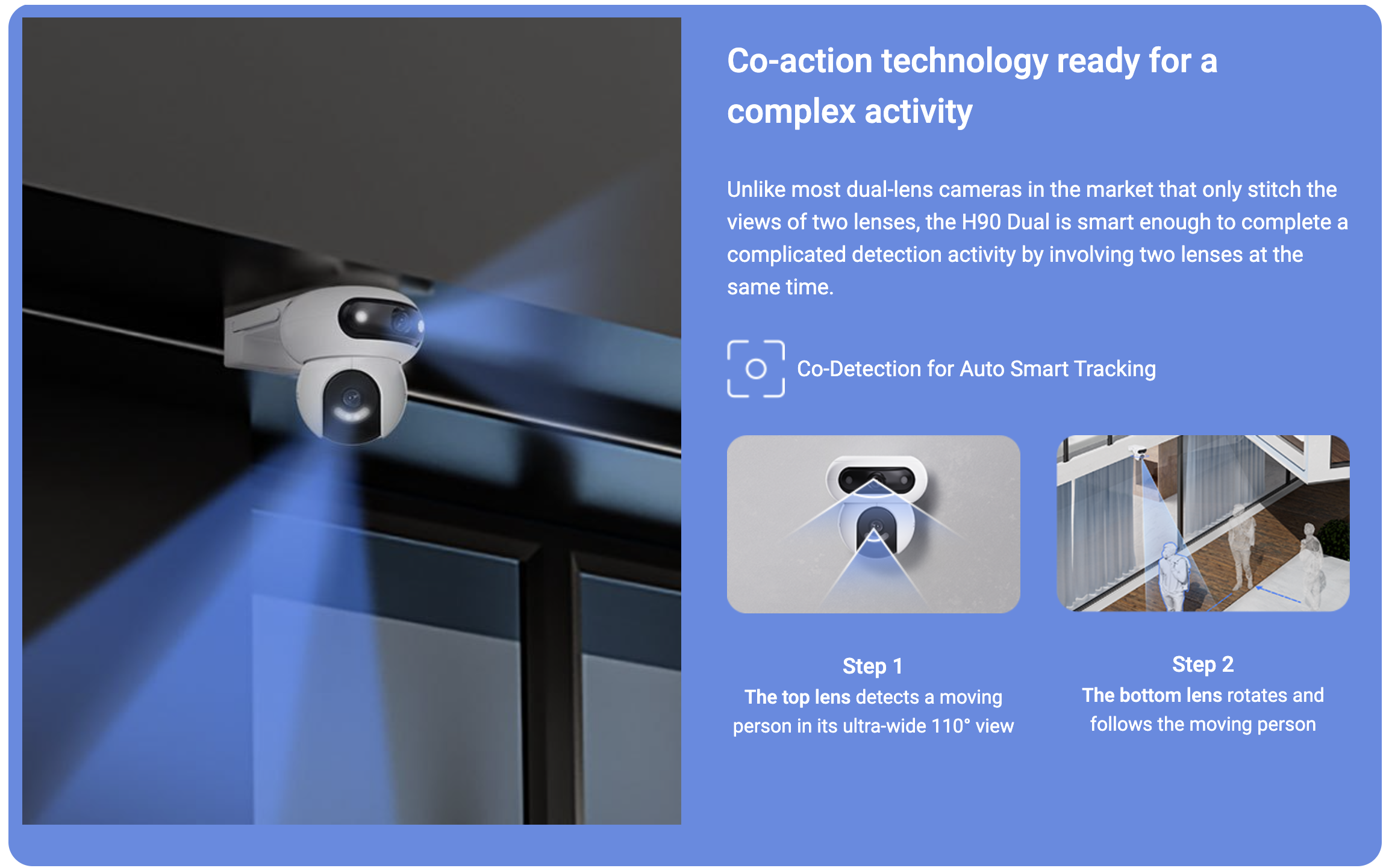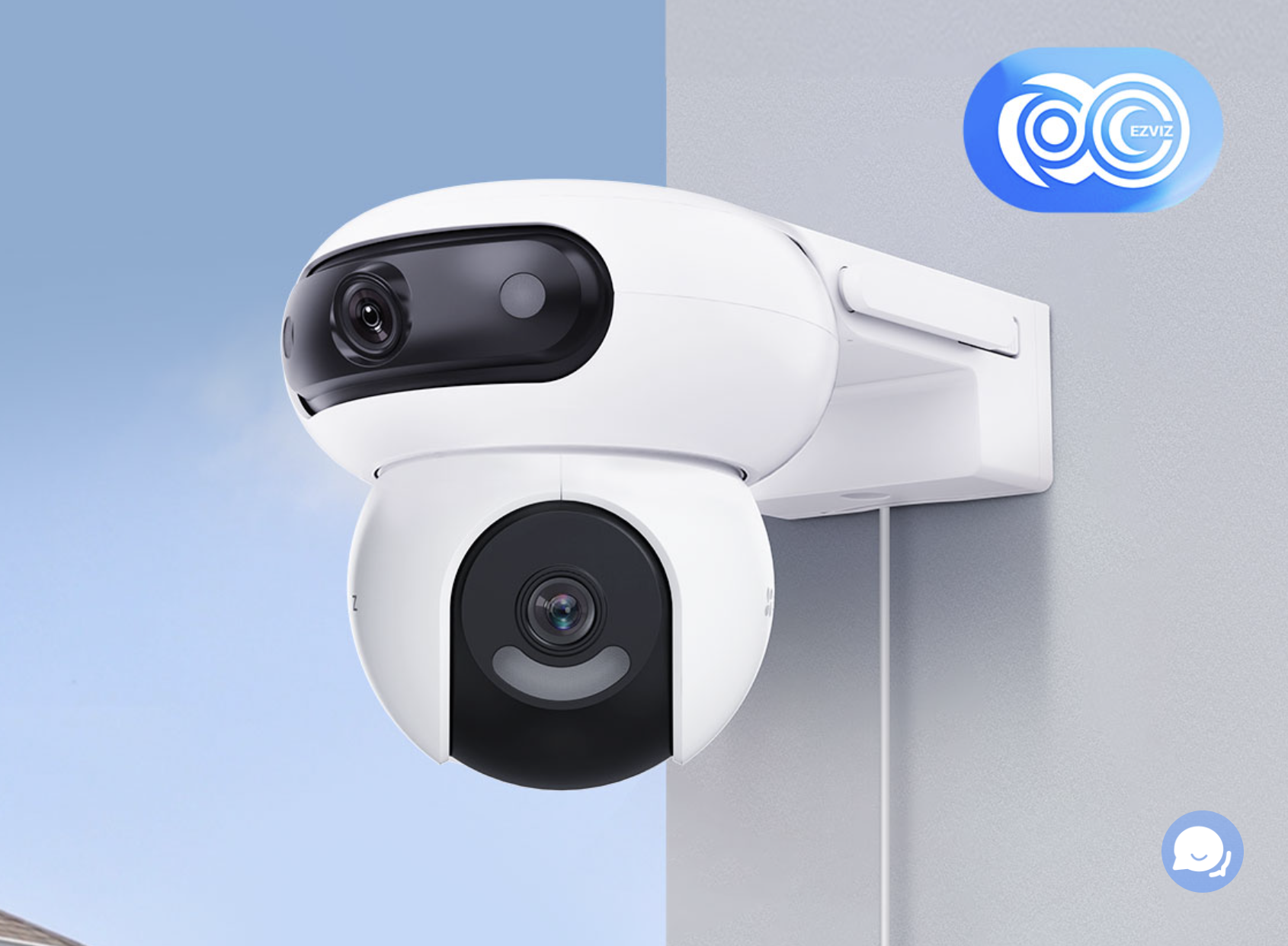 Another innovation in the EZVIZ star range of dual-lens cameras, the H90 Dual is taking 360-degree protection to a whole new level by combining two rotating lenses in a single housing. Its orb-shaped camera inherits the beloved features from EZVIZ’s pan/tilt series, and its UFO-shaped top camera adds another sweeping, ultra-wide field of view to leave no corner unwatched. The two boast additional smartness by responding to each other to complete interlinked detection and view change. In short, the H90 Dual provides unparalleled vision and efficiency for large-area monitoring.